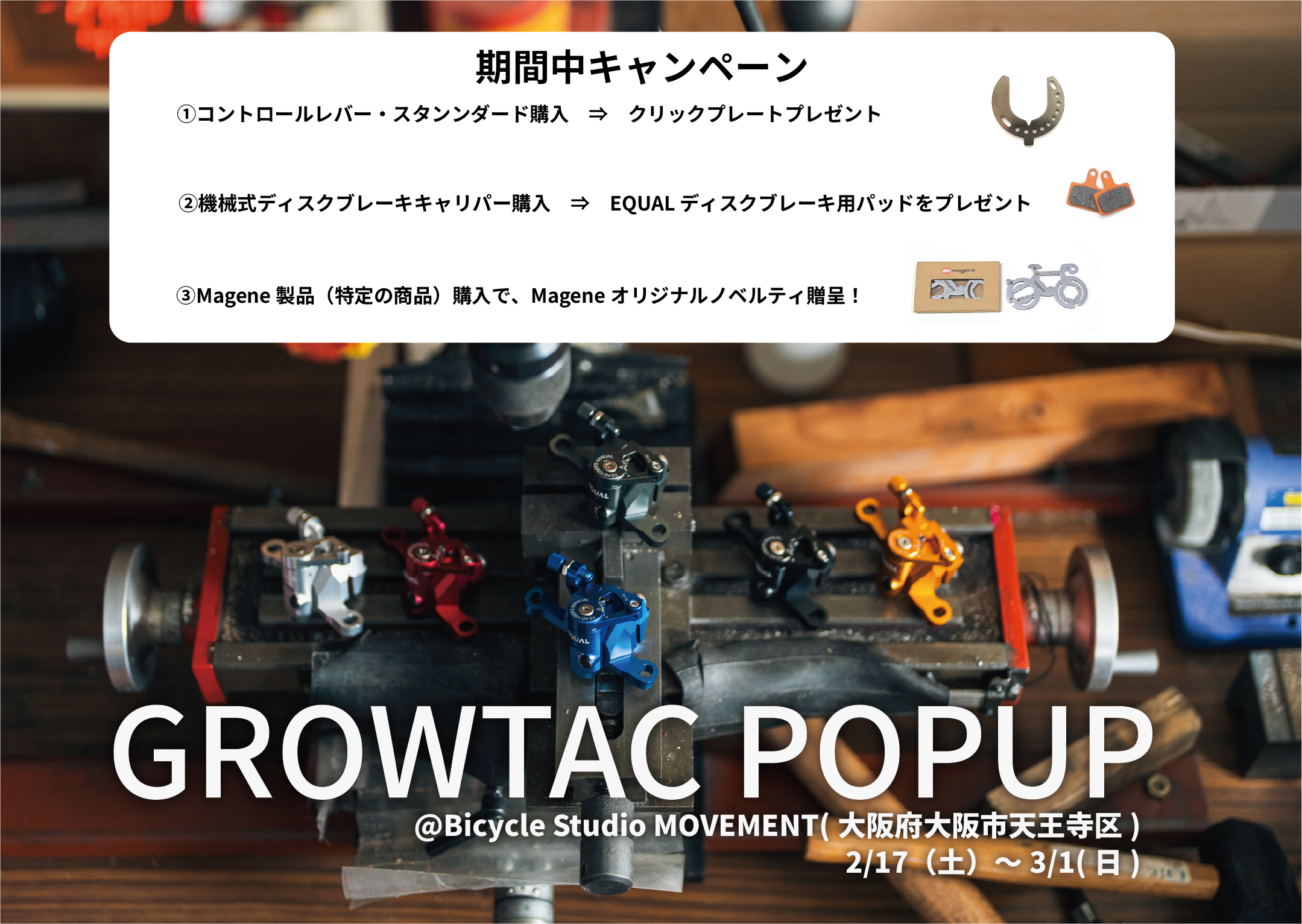 大阪市天王寺区のサイクルショップ「Bicycle Studio MOVEMENT」にて、グロータックのPOPUPを開催いたします。